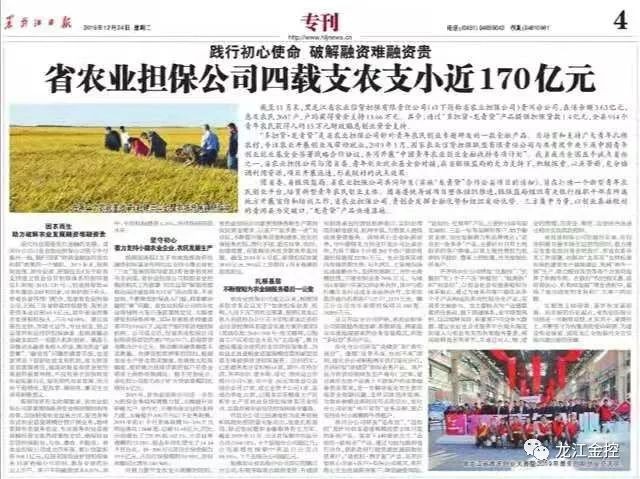 黑龙江省农业信贷担保有限责任公司紧紧围绕推进农业供给侧结构性改革、加快转变农业发展方式、促进多种形式农业适度规模经营开展业务,成立四年来,累计贷款担保168.1亿元,位居全国农业信贷担保体系33家省级公司前列,惠及全省农民22.3万户。